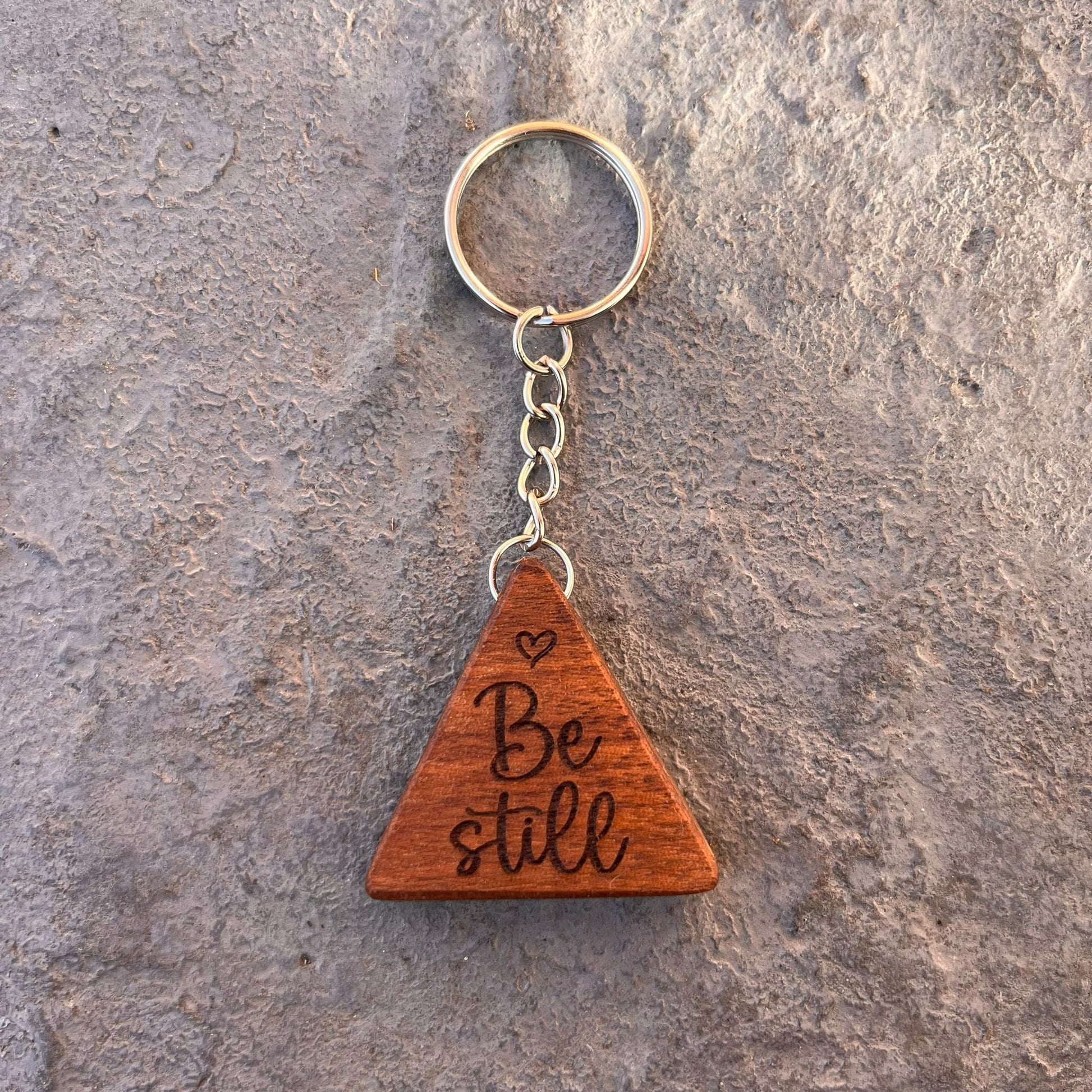 Laser engraved keyring, made from a piece of walnut. The wood has been coated in danish oil to protect it.