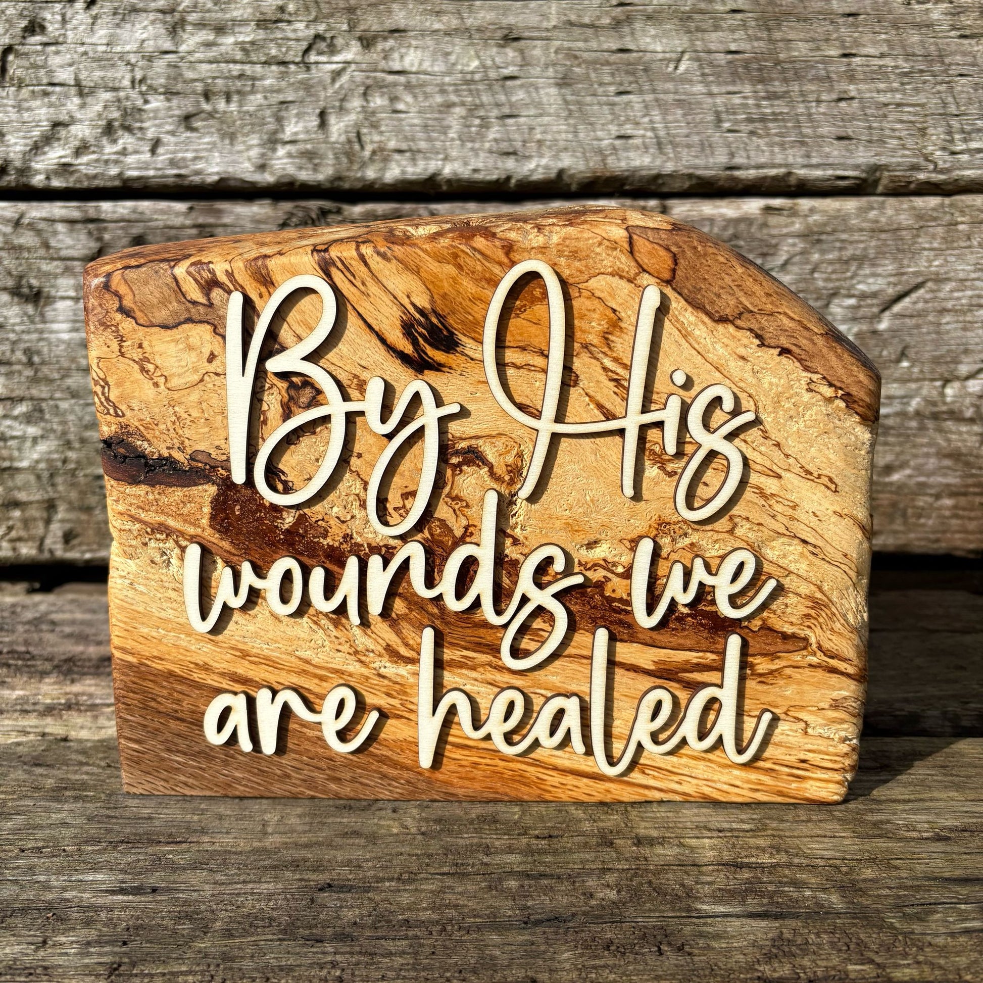 'By His wounds we are healed' - live edge rustic decorative plaque