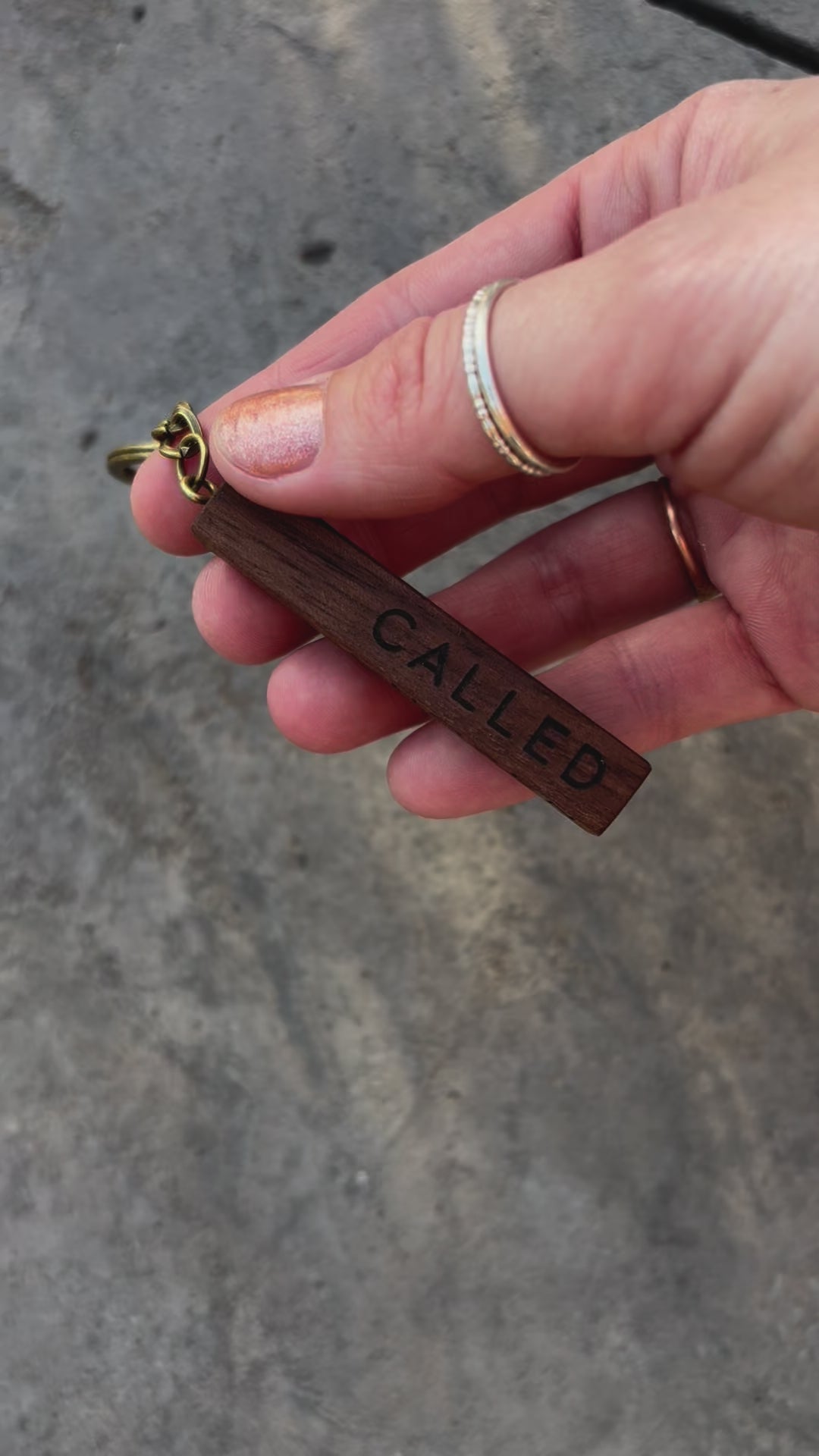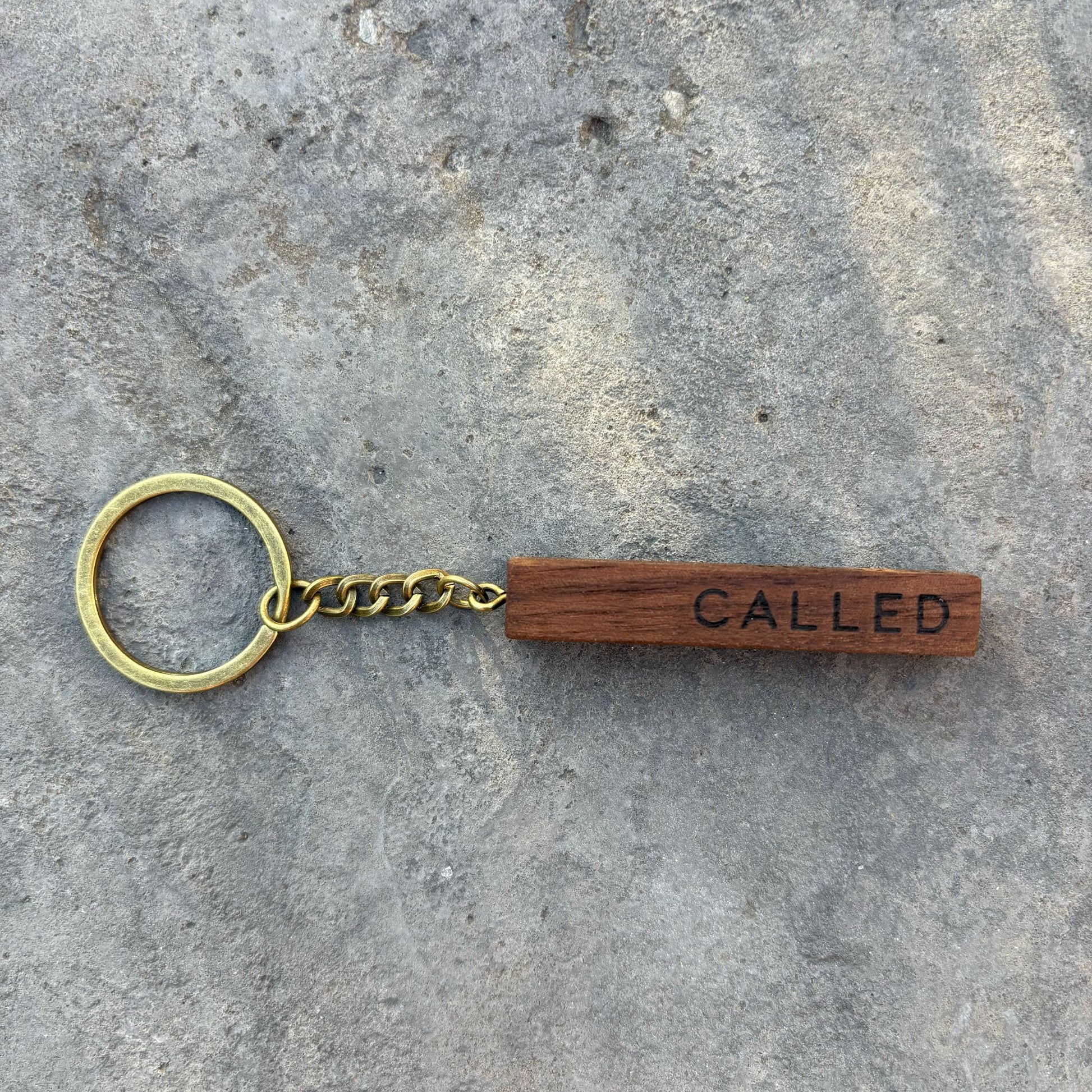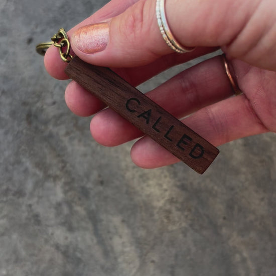 'Called, Chosen, Faithful' walnut bar keyring