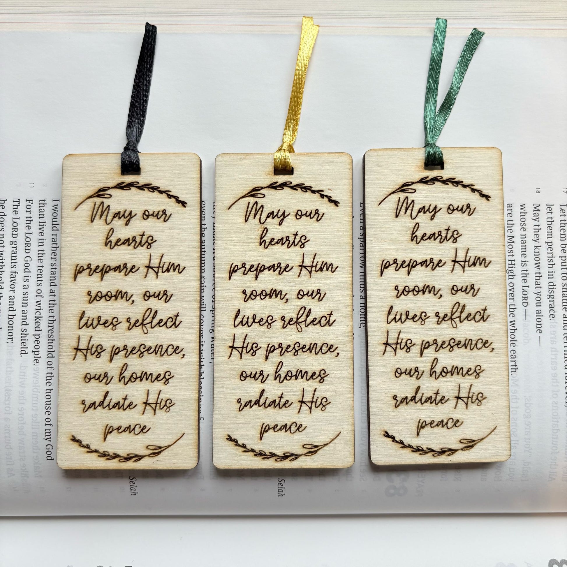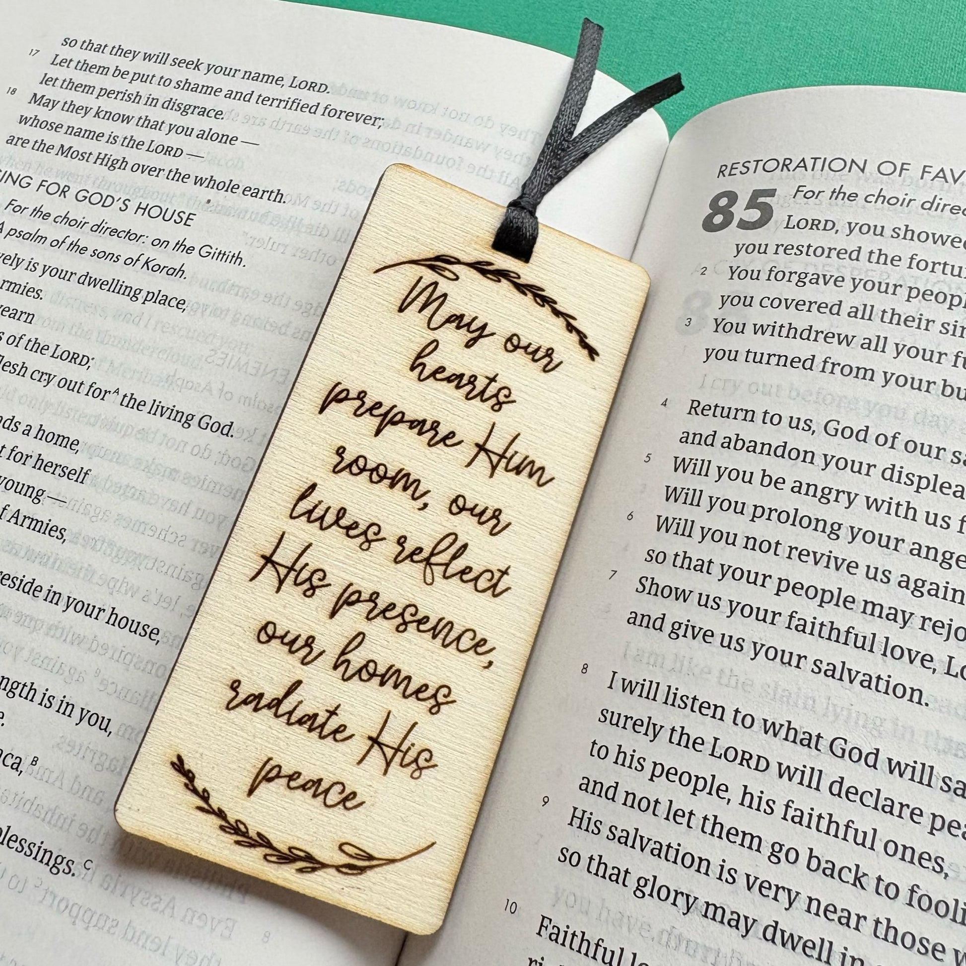 'May our hearts prepare Him room' laser engraved wooden bookmark