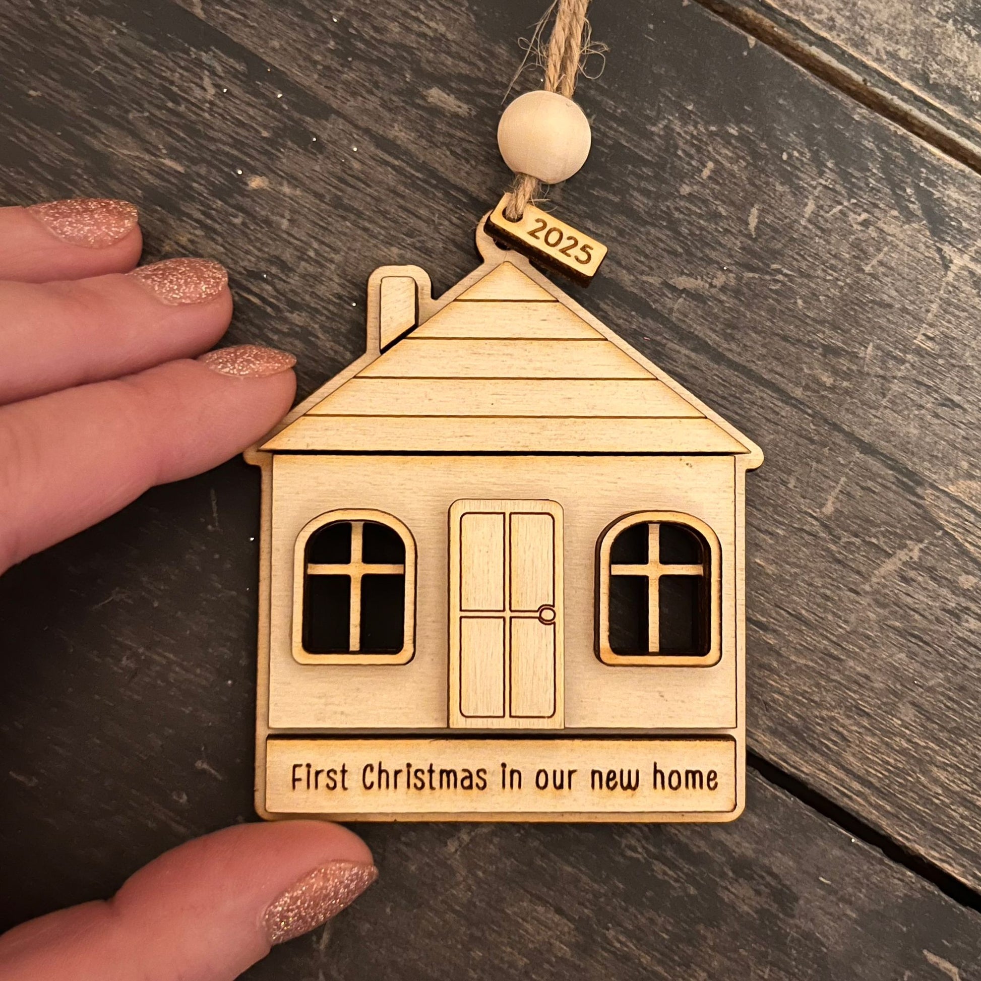 ❆ 'First Christmas in our new home' wooden Christmas bauble