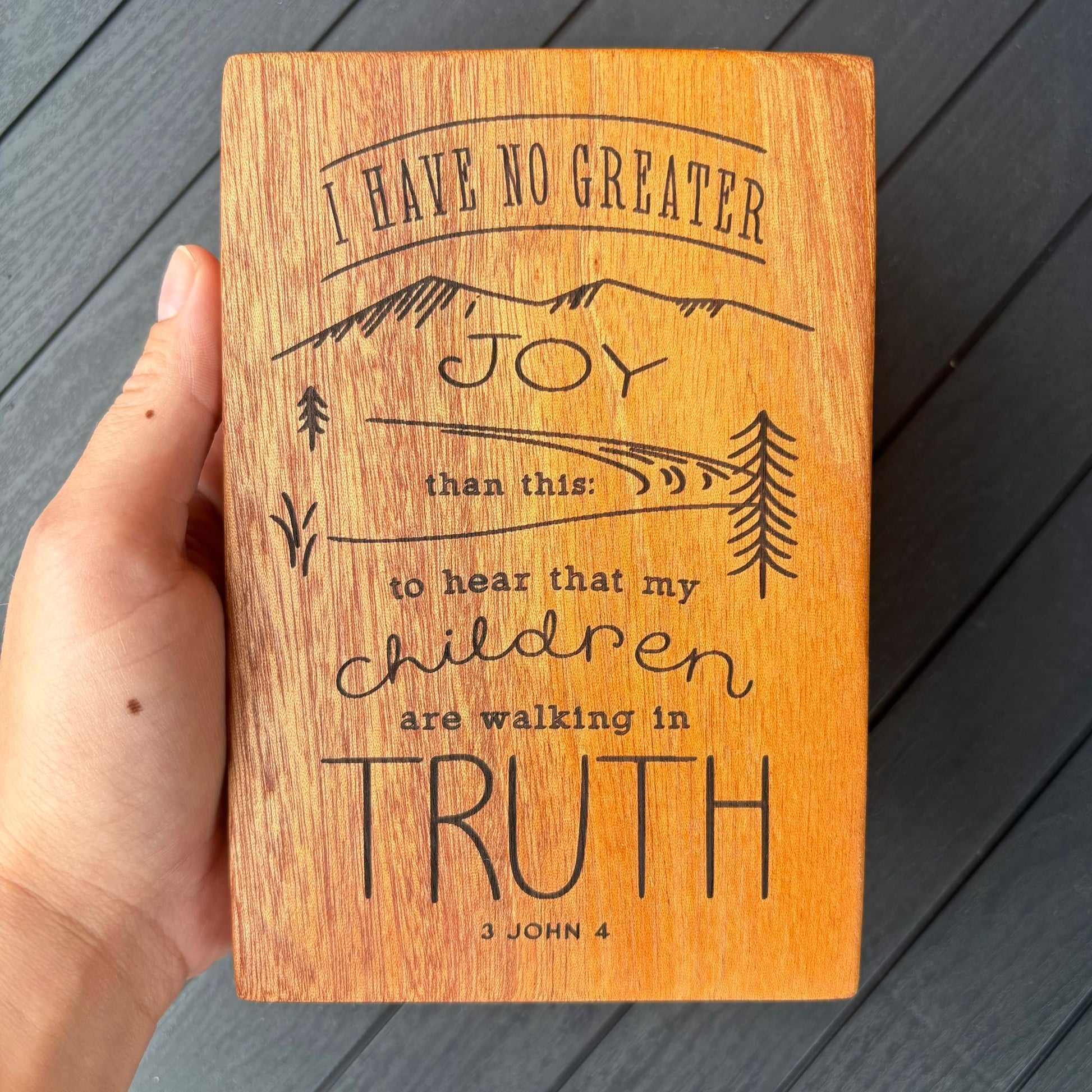 'I have no greater joy' mahogany plaque