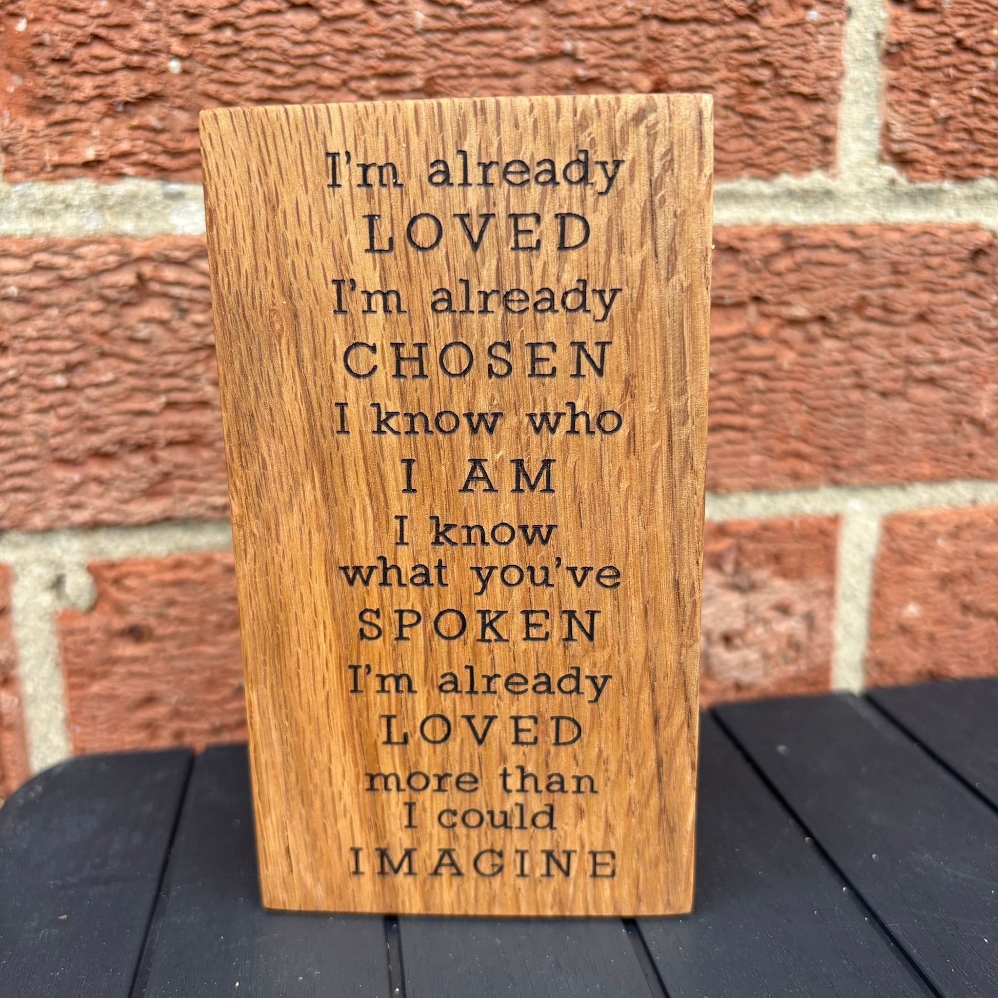 'I'm already loved' solid oak plaque