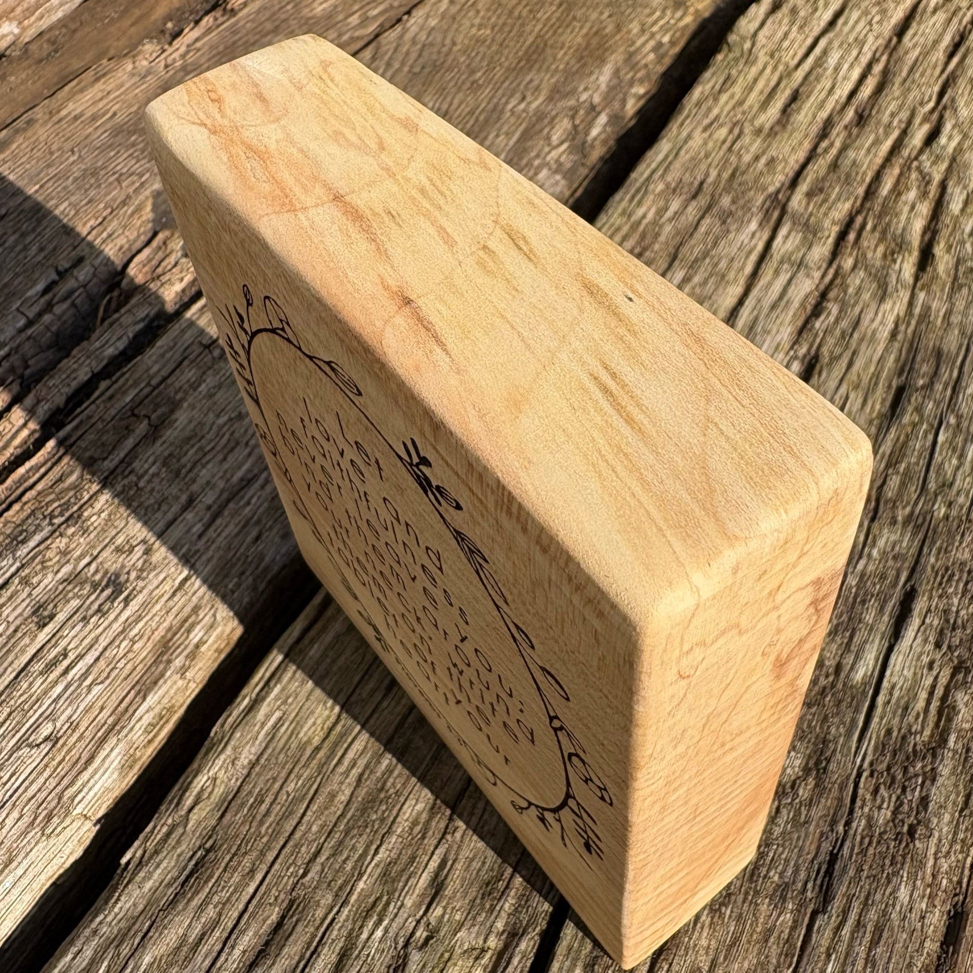 Live edge wooden plaque, laser engraved with a message to last a lifetime. This piece of wood is completely unique in its size, shape and markings. It has been coated in danish oil to protect it. It has a flat bottom, so stands independently (over 1" thick).