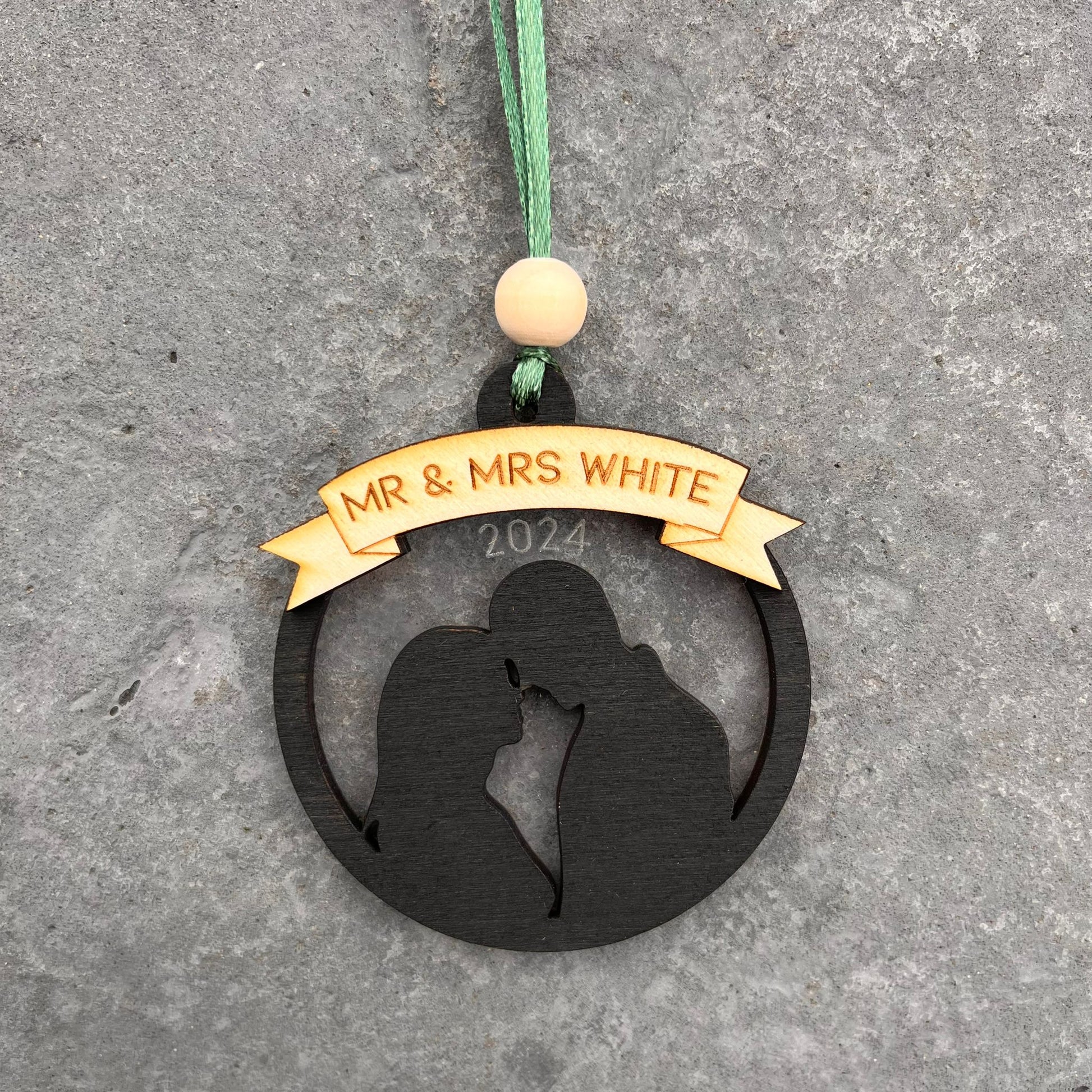 ❆ ‘Mr & Mrs' personalised acrylic/wood bauble