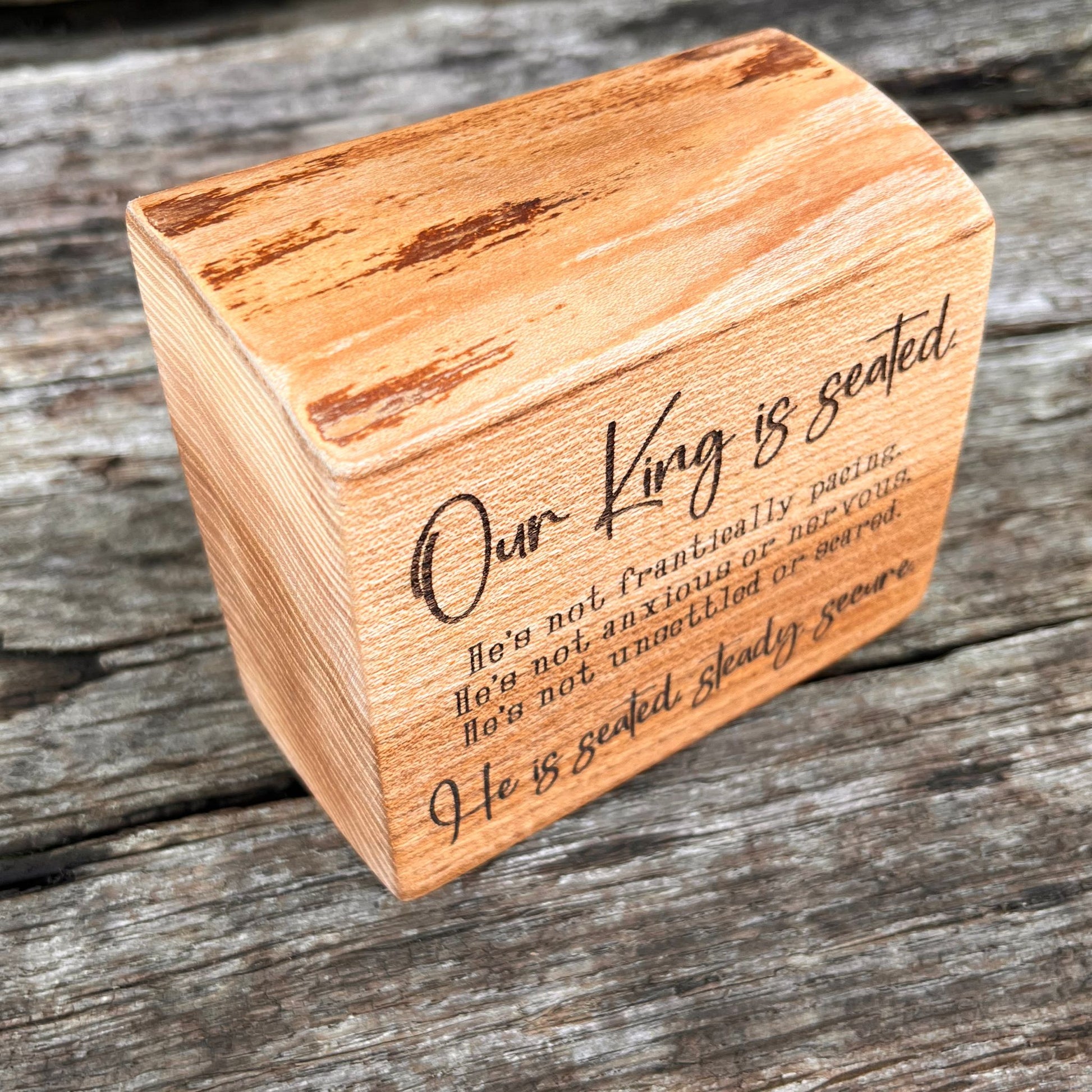 'Our King is seated. He's not frantically pacing. He's not anxious or nervous. He's not unsettled or scared. He is seated, steady, secure.'