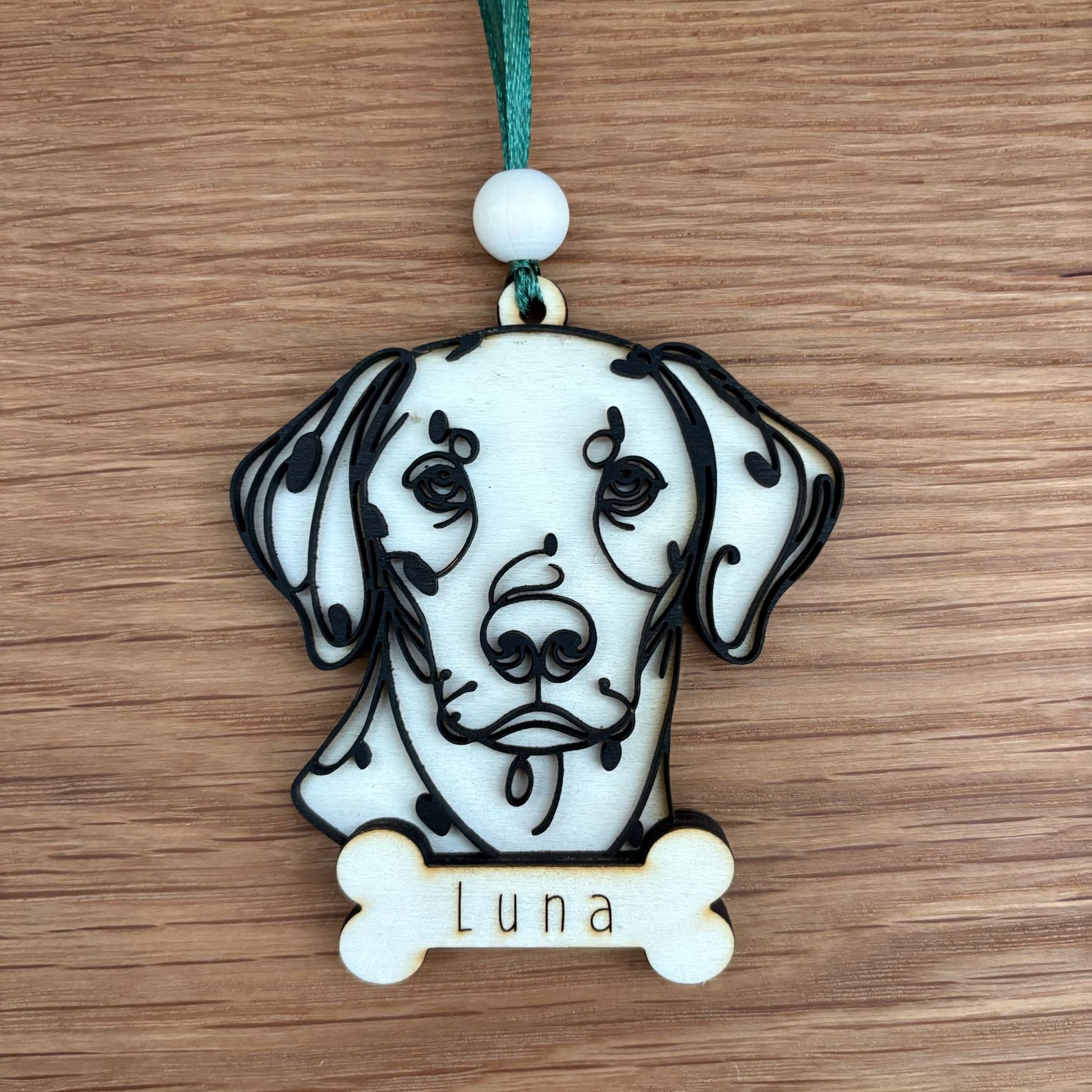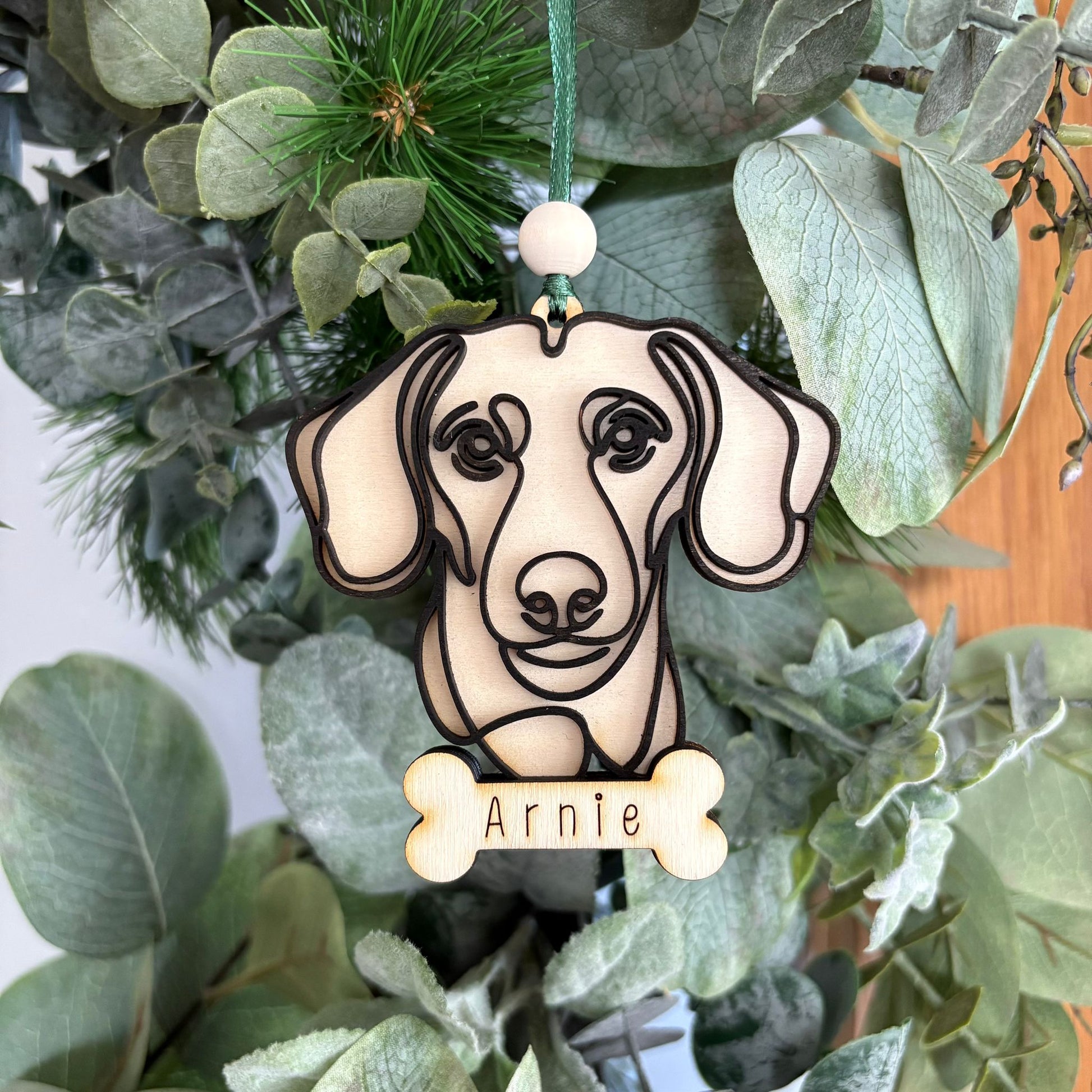 Bigger than our standard baubles, these keepsakes for our furry friends are made from 3 layers of laser wood, with a black outline and personalised bone.