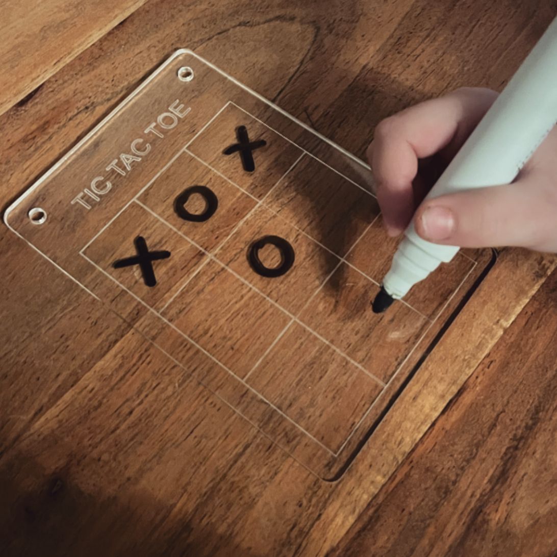 Laser engraved acrylic game set, perfect to pop into a bag for travel, in the car or even awaiting appointments. Using dry board markers, you can enjoy each board and simply wipe clean when finished, ready for another game.
