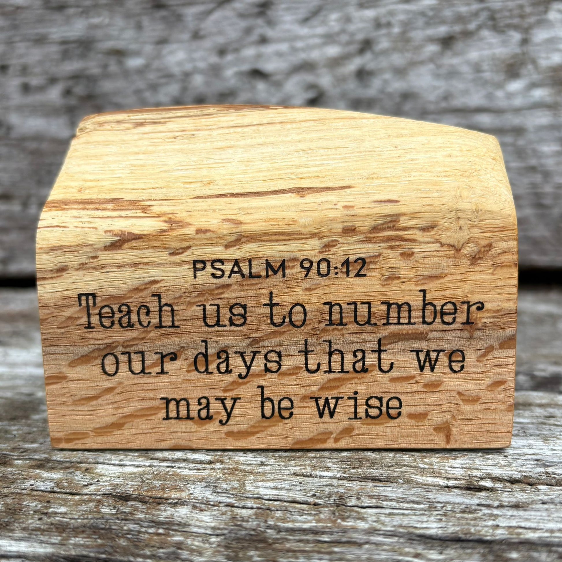 'Teach us to number our days that we may be wise' - live edge decorative plaque