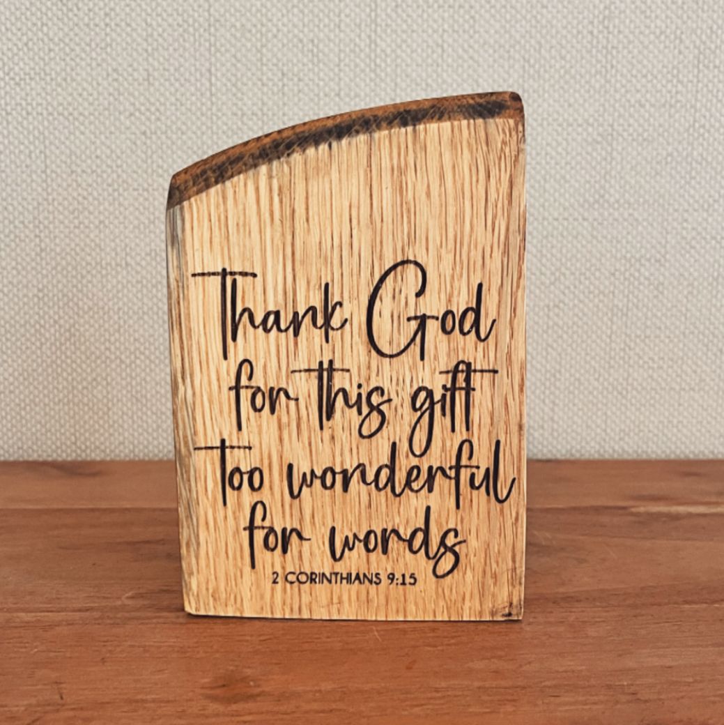 'Thank God for this gift' white oak laser engraved hanging plaque