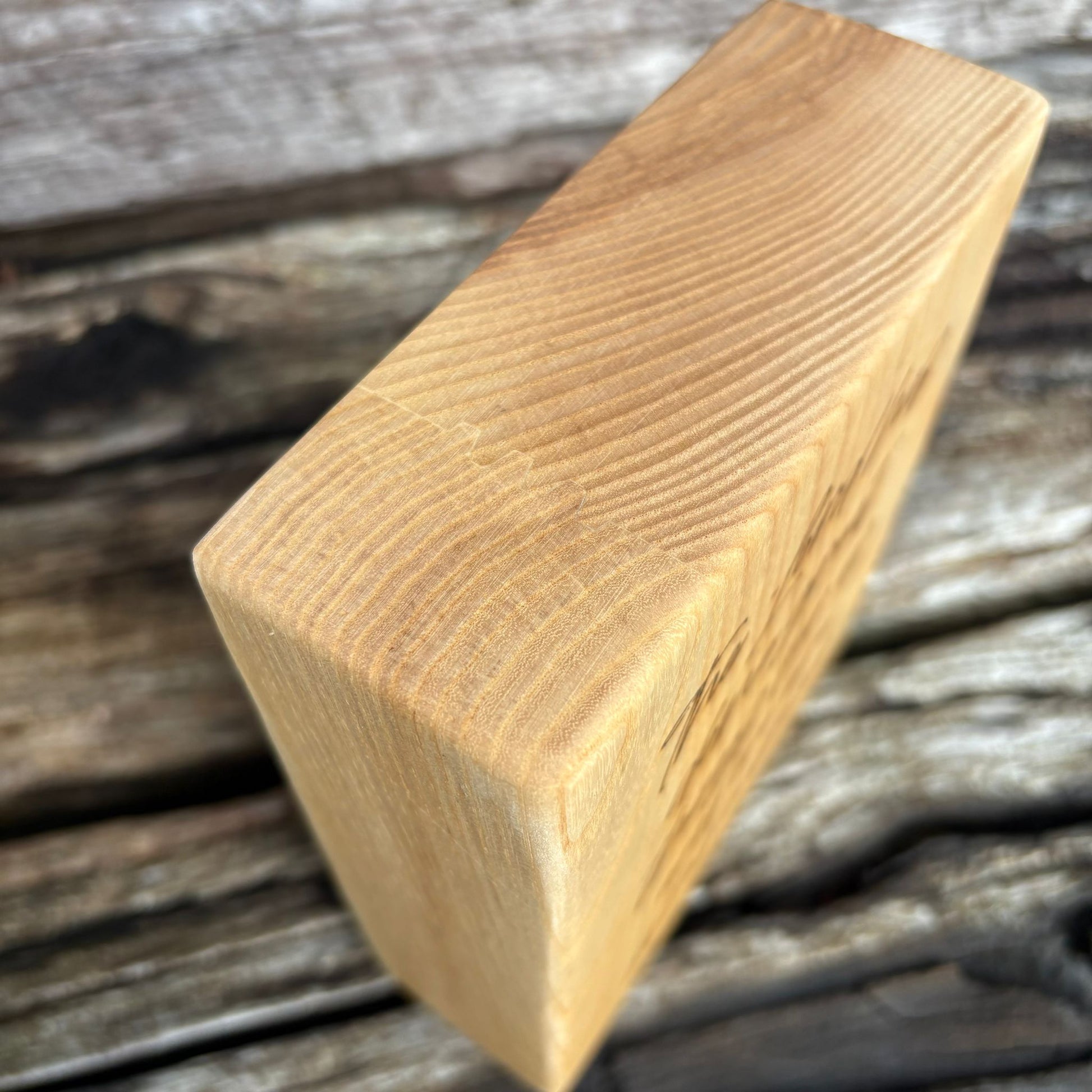 Solid ash plaque, laser engraved with a message to last a lifetime. The ash has been coated in danish oil to protect it. This piece is completely unique in its size, shape and markings. It has a flat bottom, and at over 2" thick, stands independently.