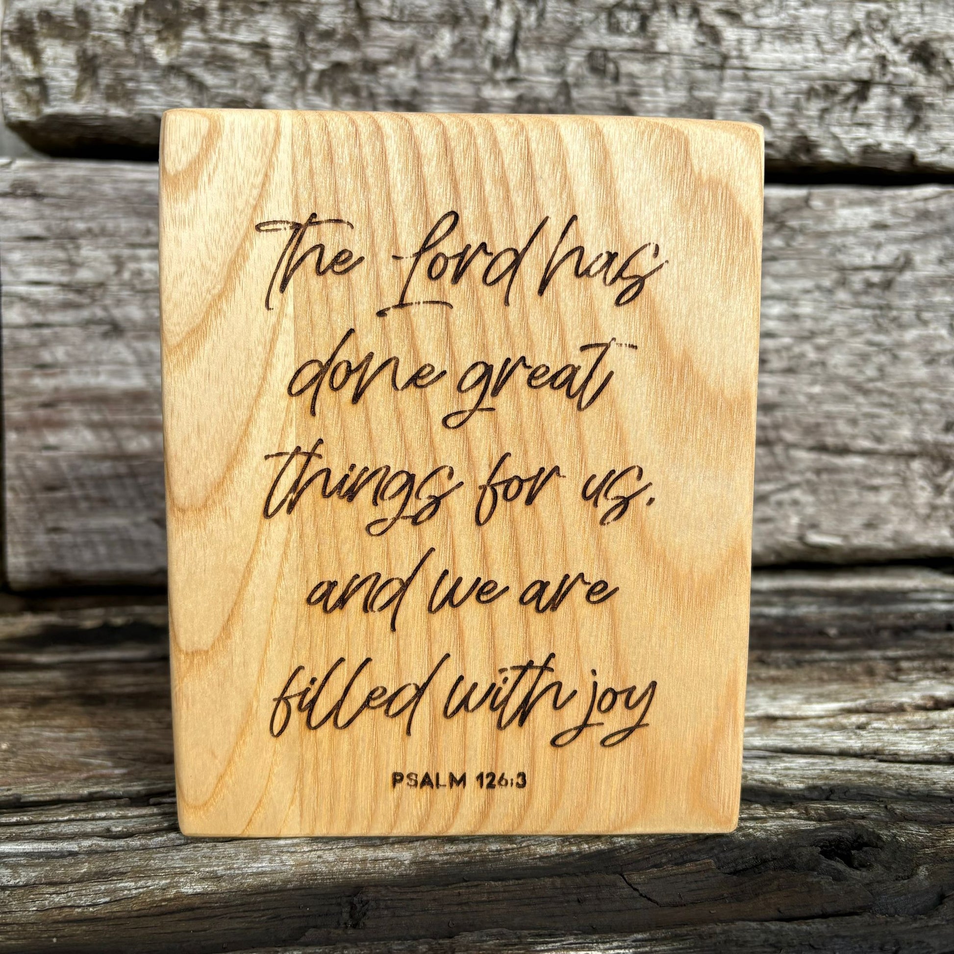 'The Lord has done great things for us' - ash decorative plaque