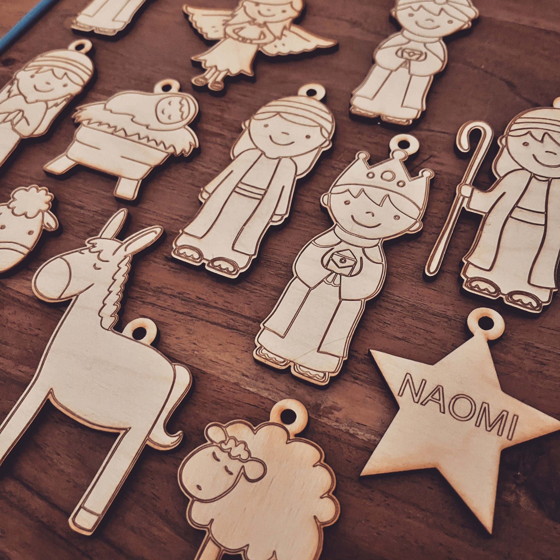Box set of wooden shapes based on the bible story, perfect for painting and decorating. These can be made into baubles/tags, or add your own ribbon to create bunting.